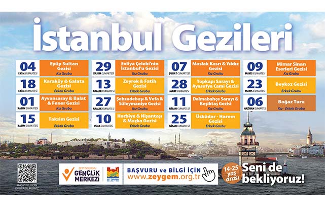 ZEYGEM tarafından organize edilen İstanbul Gezileri’ne 14 -25 yaş aralığındaki Zeytinburnu’nda okuyan ve ikamet eden tüm gençler ücretsiz olarak katılabiliyorlar. Geziye katılmak isteyen gençlerin www.zeygem.org.tr üzerinden başvurması yeterli oluyor.