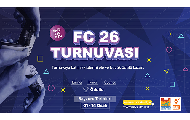 Zeytinburnu Belediyesi Gençlik Merkezi’nin düzenlediği FC 26 Turnuvası, 14-25 yaş arası gençleri 24 Ocak 2026’da oyun başında buluşturacak. Katılım ücretsiz; dereceye girenleri toplam 10.500 TL değerinde hediye çeki bekliyor.